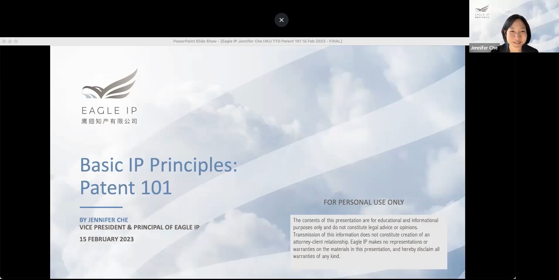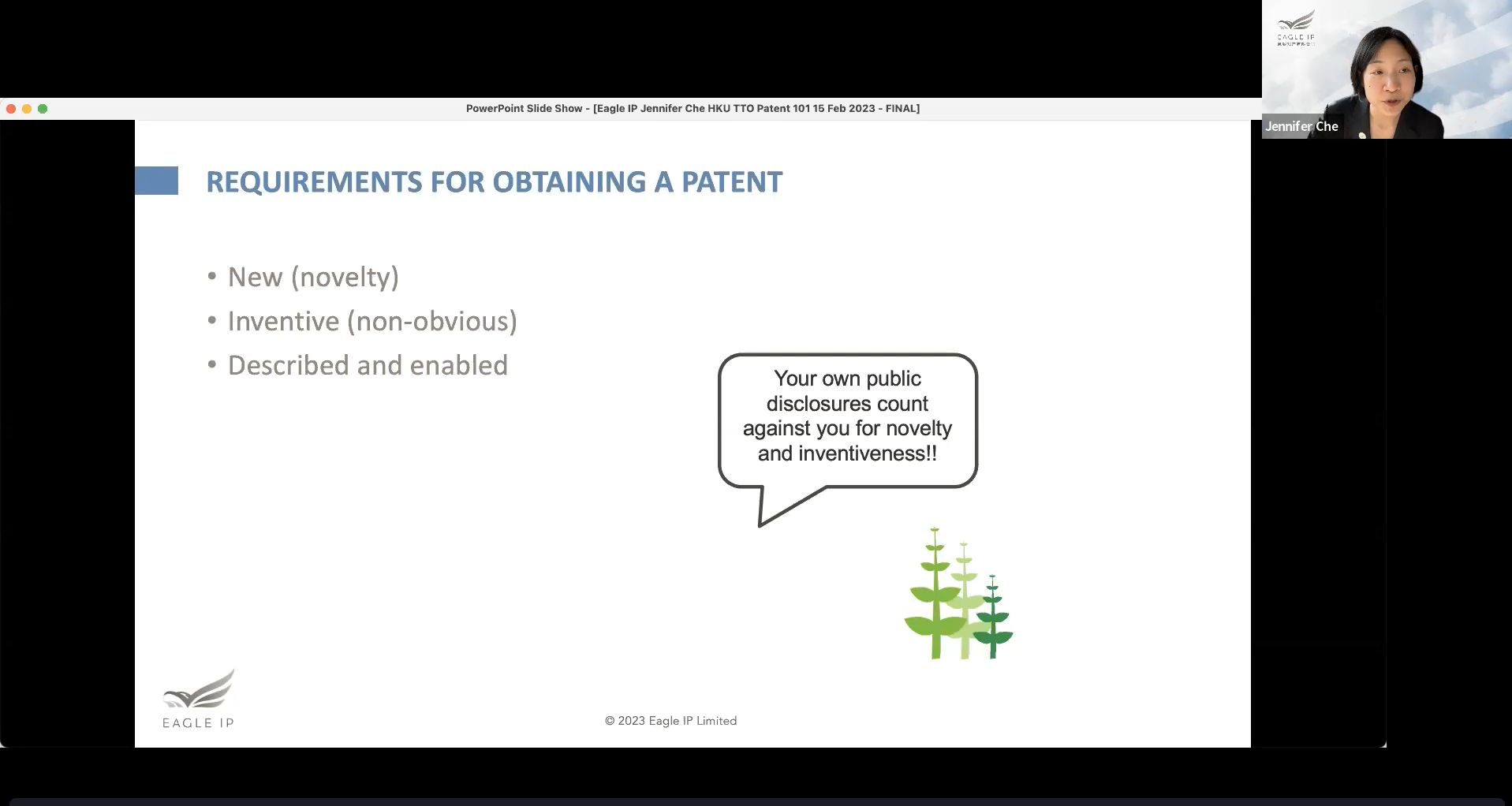 It was a busy Wednesday for Eagle IP! Last Wednesday (15 Feb), our Vice President and Principal, Jennifer Che, also gave a talk at the HKU Technology Transfer Office’s “Technology Transfer Primer” webinar series, sharing with the HKU community the 101s of patents and top tips to protect IP.