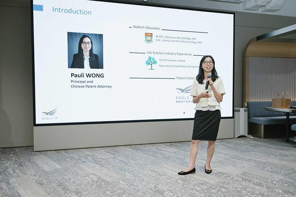 Pauli shared her career journey becoming a patent attorney at Eagle IP, from an HKU biotech graduate and a scientist with CK Life Sciences. She provided an introduction to intellectual property, particularly patents, and life sciences challenges we are facing, and how to pursue a career path in patent law. By sharing her own experiences, Pauli offered valuable insights and guidance to the aspiring interns to appreciate the importance of IP and consider a career path in patent law.